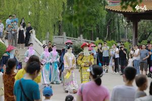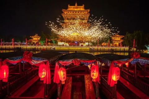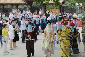 乾隆帝与众朝臣及爱妃,乘坐龙船沿着古城秀美河道,来到了天后宫景点,在朝臣的带领下,乾隆帝与爱妃缓缓步入。这就是台儿庄古城大型实景演出《乾隆巡游台儿庄》。