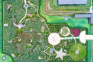 植物迷宫,是梦幻迷宫景区的标志性项目,占地35596.74平方米,总路径长9.45公里。获得“世界最大的永久性树篱迷宫”和“世界最长路径的永久性树篱迷宫”两项吉尼斯世界纪录称号。它以大丰特色资源——麋鹿为主题,4万多株红叶石楠构成一只巨大的麋鹿造型,肌理清晰,活灵活现,四周被10万多株整齐排列的桧柏包围。从空中鸟瞰,仿佛一只巨大的麋鹿昂首阔步,行走在绿野之中。