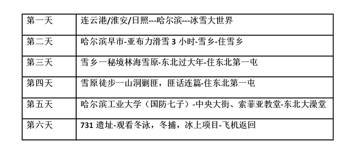 备注:考虑到东北冬季不可抗拒因素,会调整部分行程,望大家理解。